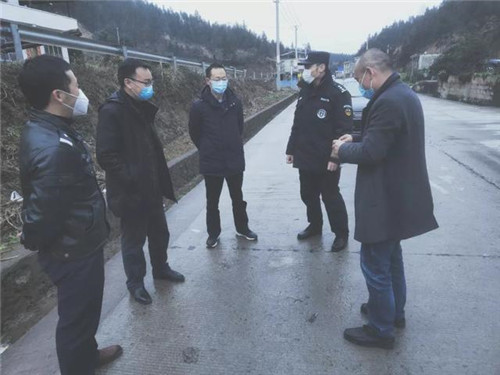 2月4日上午,王飛從湖北利川市忠路鎮涼風埡卡口回到特警大隊宿舍, 剛值完24小時班的他有些疲憊。從前一天開始,他的戰場由城區轉移到利川市忠路鎮涼風埡。在這里,王飛的工作還是主要負責對進、出車輛、人員進行管控、登記以及體溫測量。“我帶6個輔警,加上交通、衛生部門,還有村委會的人員,組成一個小組,24小時一個班次。”
