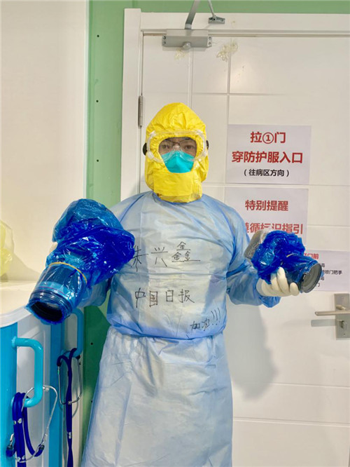 中國日報記者朱興鑫來到同濟醫院中法生態新城院區隔離病房采訪(朱興鑫供圖)