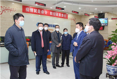中投公司黨委書記、董事長彭純(左一)在新華保險公司調研督導疫情防控工作。