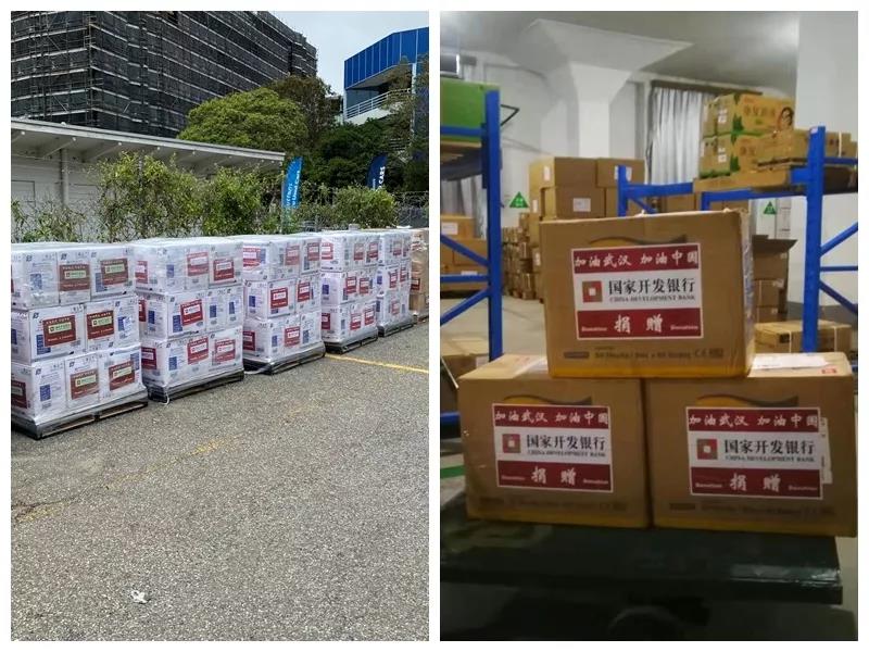 金融合作伙伴摩洛哥外貿銀行第一時間向表示了100萬美元防疫物資的捐贈意愿,2月18日,15萬個醫用N95口罩、90萬只醫用手套等物資已從摩洛哥起運發往開行,再由開行轉運湖北。這是迄今為止,開行合作伙伴中金額最大的一筆捐贈。