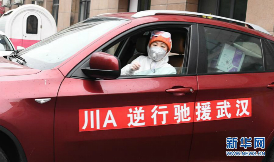 2月26日,“雨衣妹妹”準備開車出發送餐。圖片來源:新華社