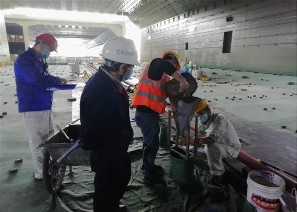 深中通道海底沉管E2管節自密實混凝土澆筑施工現場