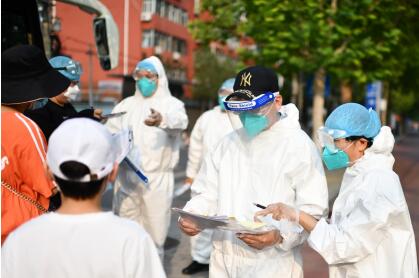 北京新發地批發市場聚集性疫情發生后,機關下沉干部帶領居民批次進行核酸檢測。