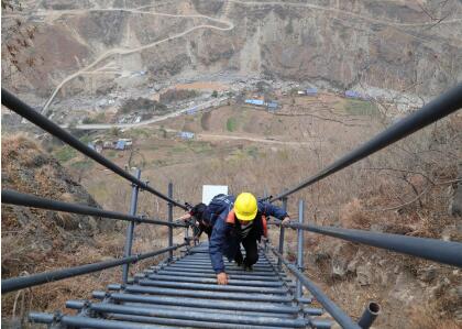 中國電信工作人員翻山越嶺為四川省涼山州“懸崖村”安裝網絡。
