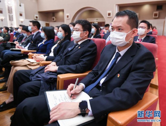 3月16日,參會人員在聽報(bào)告。新華社記者 陳曄華 攝
