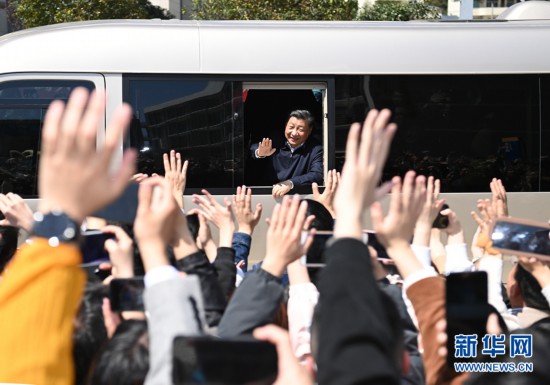 3月22日至25日,中共中央總書記、國家主席、中央軍委主席習(xí)近平在福建考察。這是25日上午,習(xí)近平在福州閩江學(xué)院考察時,向師生們揮手致意。 新華社記者 王曄 攝