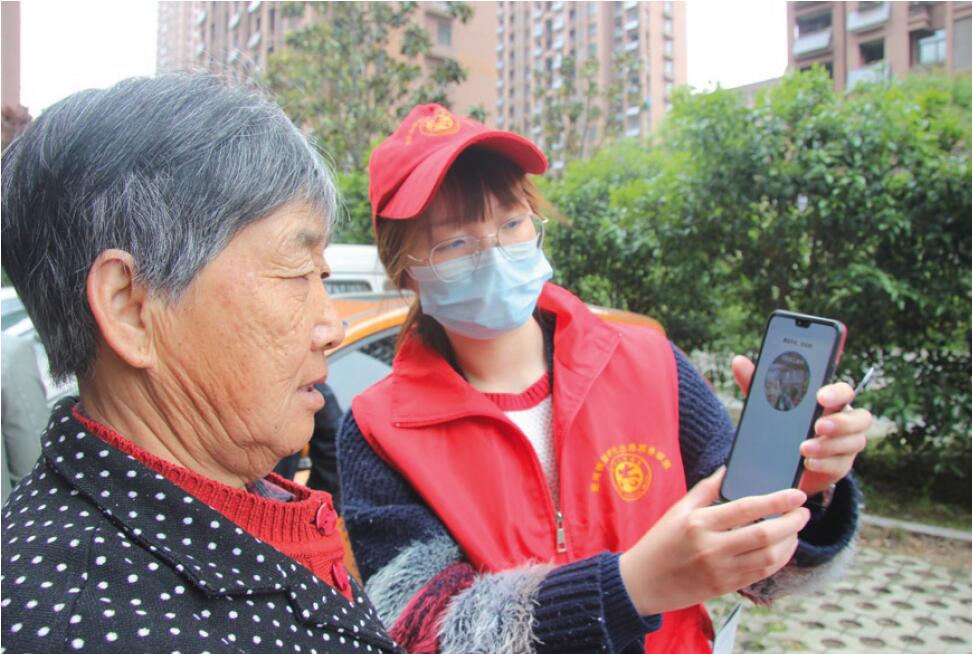 >> 2020年4月21日,安徽省合肥市的志愿者幫助老年人通過線上“人臉識別”完成城鄉 居民基本養老保險待遇領取資格認證。