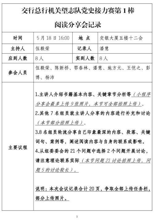 圖為交通銀行總行機關望志隊閱讀分享會記錄