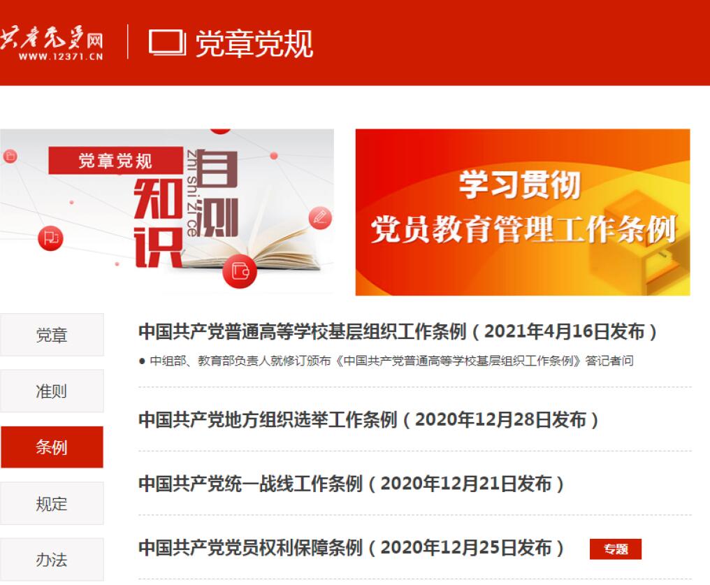 >> 共產黨員網制作的黨內法規學習專題網頁。