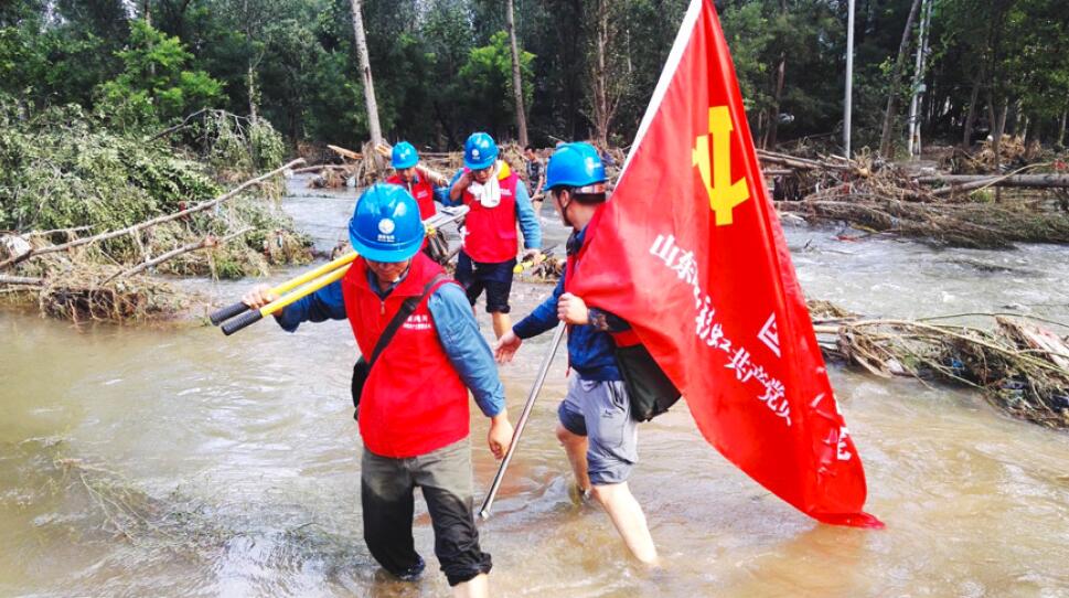 >> 國網山東省電力公司彩虹共產黨員服務隊全力應對臺風“利其馬”。