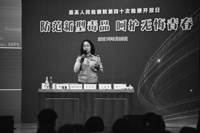 徐鵬在最高人民檢察院禁毒宣傳活動上講解新型毒品知識。鐘心宇攝