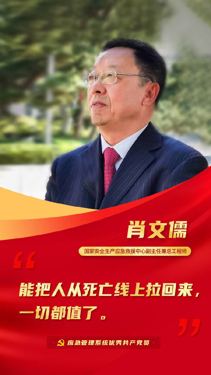 他是肖文儒,國家安全生產應急救援中心副主任兼總工程師,從事應急救援工作38年,直面700多起事故,參與救出1000余名被困人員。“作為一名黨員,我的職責是救人,不管吃多少苦,受多少累,能把人從死亡線上拉回來,一切都值了。”肖文儒說。