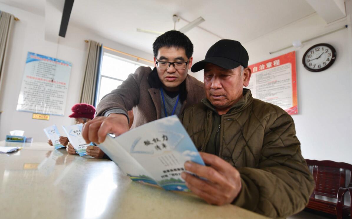 >> 2020年12月17日,在廣西鹿寨縣鹿寨鎮波井村政務服務中心,紀檢監察干部(前左)向村民介紹“微權力”清單。