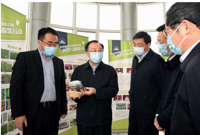 >> 作者 (左二) 赴江蘇省農業科學院調研農業科技創新,推進種業科技自立自強、種源自