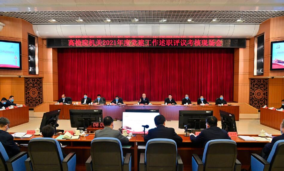 >> 最高人民檢察院機(jī)關(guān)連續(xù)三年舉行黨建工作述職評(píng)議,充分發(fā)揮黨建引領(lǐng)和保障作用,推動(dòng)黨建與檢察業(yè)務(wù)深度融合。圖為2021年度黨建工作述職評(píng)議考核現(xiàn)場(chǎng)會(huì)。