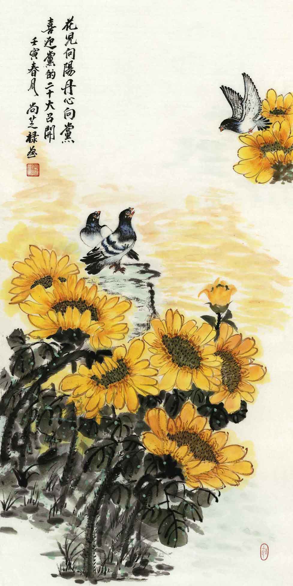 《花兒向陽(yáng)丹心向黨》(中國(guó)畫(huà)) 尚芝祿(民政部)