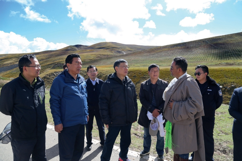 >> 求是雜志社堅持以黨建促鄉村振興,認真履行定點幫扶青海省玉樹藏族自治州雜多縣的政治責任。圖為社長夏偉東 (左四) 深入雜多縣一線調研。