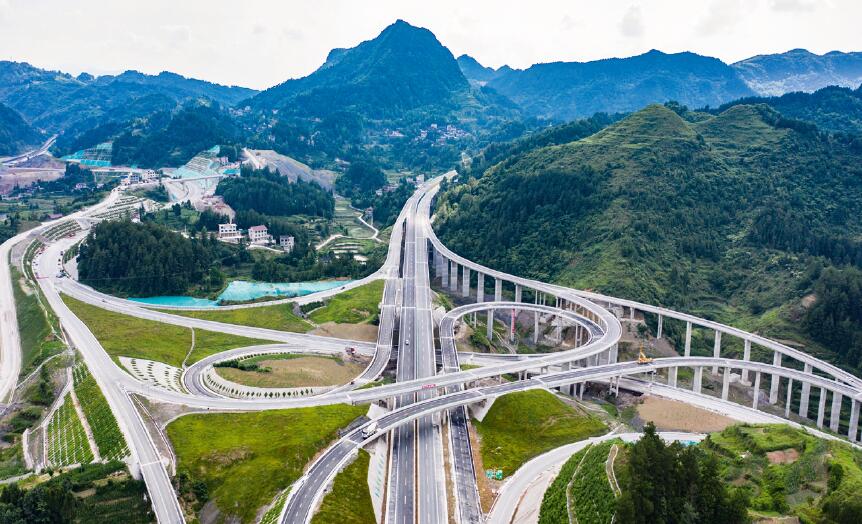 貴州石阡至玉屏高速公路花橋互通(2021年6月17日攝,無人機照片)。