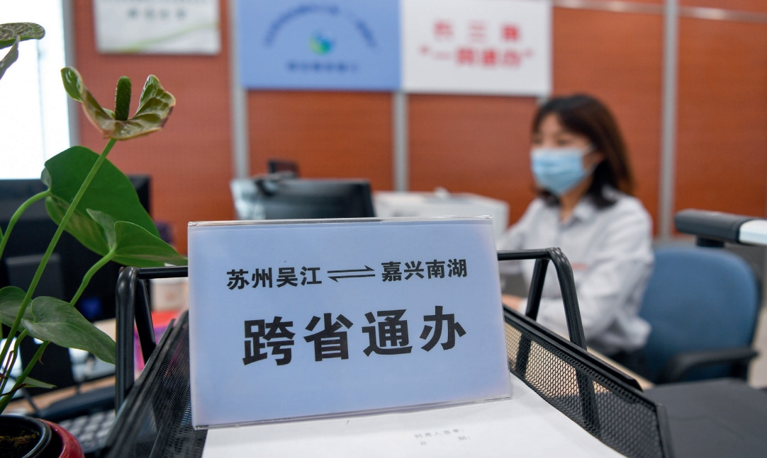 >> 黨的十八大以來,以習近平同志為核心的黨中央立足我國區(qū)域發(fā)展新形勢,著眼全國“一盤棋”,以深化區(qū)域協(xié)調發(fā)展經略發(fā)展大格局。圖為江蘇省蘇州市吳江區(qū)政務服務中心長三角“一網通辦”服務窗口。