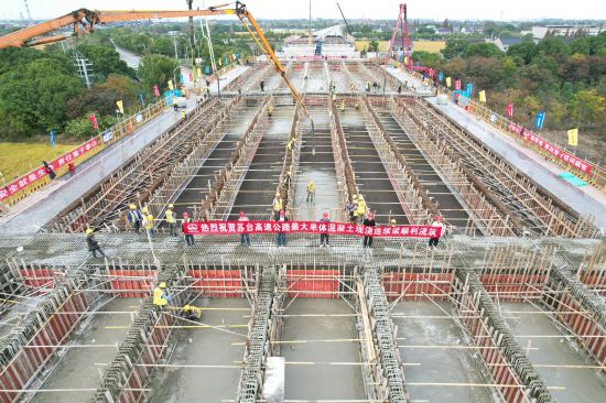 一年春作首,奮進正當時。在蘇州至臺州高速公路七都至桃源段項目的施工現場,一線建設者們正鉚足干勁投入到火熱的建設中。作為江蘇區域高速網及環太湖高速公路的重要組成部分,蘇州至臺州高速公路七都至桃源段項目全長18.22公里,全線位于蘇州市吳江區境內,是吳江百姓津津樂道、翹首以盼的民心工程。2022年,國家開發銀行蘇州分行積極發揮開發性金融作用,組建銀團發放貸款10.5億元支持項目建設。建成后,這條民心高速對完善江蘇路網體系建設,增強江蘇省與浙江省城際交通聯系、促進兩省城市群融合發展發揮重要作用。