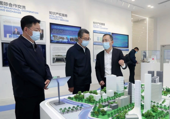 >> 2022年11月,作者(左二)到上海市知識產權保護中心調研。