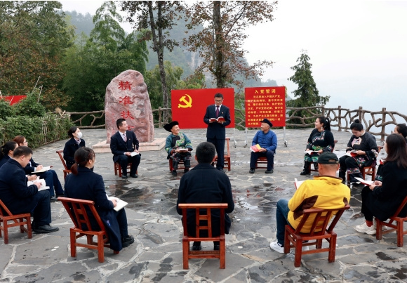 >> 在湖南湘西十八洞村,國家外匯管理局湘西州中心支局與村委村民、相關金融機構代表共同學習黨的二十大精神。