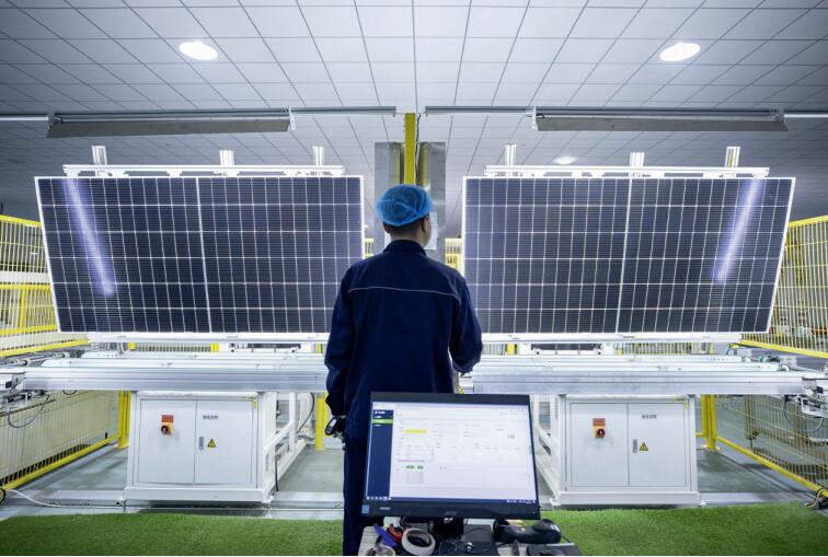 在位于寧夏同心工業園區清潔能源產業園的英利新能源(寧夏)有限公司組件制造部生產車間內,工作人員對光伏產品進行質量檢查(2月23日攝)。近年來,寧夏吳忠市同心縣以發展風光電儲等清潔能源產業作為發展工業的重要突破口,走出了一條獨特的綠色發展之路。