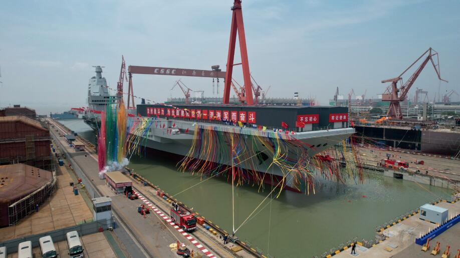 2022年6月17日,我國完全自主設計建造的首艘彈射型航空母艦“福建艦”下水。