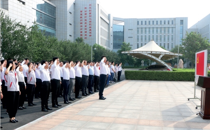 >> 4月3日,作者(前)帶領恒銀金融科技股份有限公司全體黨員重溫入黨誓詞。