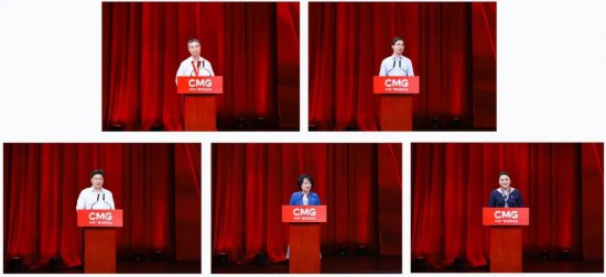 總臺各部門各單位主要負責同志和負責黨建工作的副書記,受表彰的總臺“四好”優秀黨員、“四強”黨支部、“年度黨建品牌”代表,新發展黨員代表在現場參加活動。總臺四址辦公區黨員、干部通過閉路電視收看活動直播,國內各地方總站黨員、干部通過視頻會議系統收看活動實況,并與活動現場同時重溫入黨誓詞。