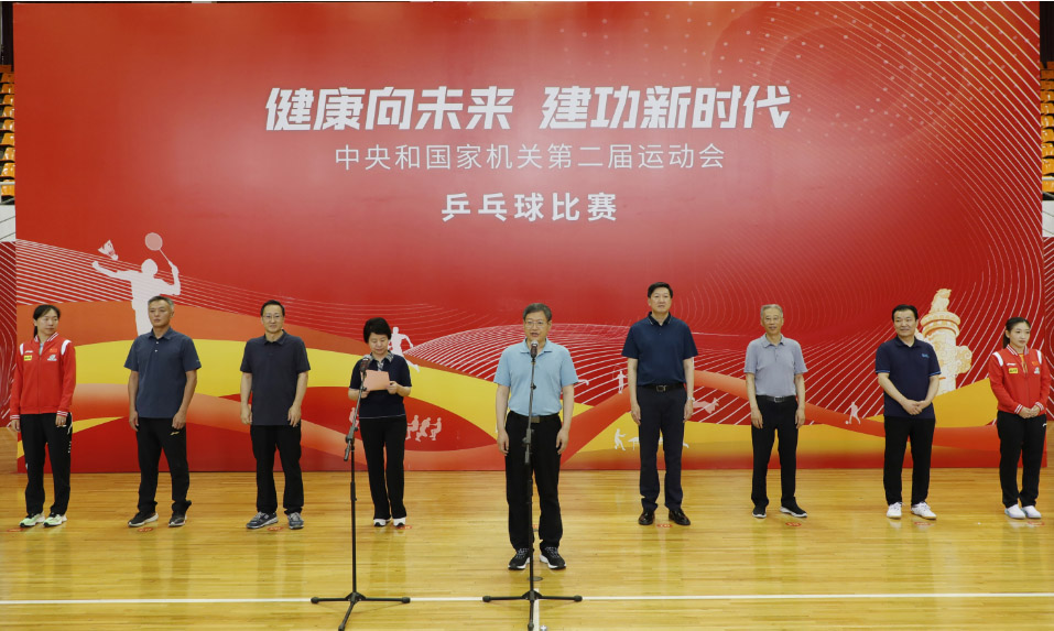 7月3日,中央和國(guó)家機(jī)關(guān)第二屆運(yùn)動(dòng)會(huì)乒乓球比賽開賽儀式在北京體育大學(xué)體育館舉行。運(yùn)動(dòng)會(huì)組委會(huì)主任、中央和國(guó)家機(jī)關(guān)工委分管日常工作的副書記郭文奇宣布比賽開始并為比賽開球,運(yùn)動(dòng)會(huì)組委會(huì)主任、國(guó)家體育總局局長(zhǎng)高志丹致辭。運(yùn)動(dòng)會(huì)組委會(huì)執(zhí)行主任、中央和國(guó)家機(jī)關(guān)工委副書記蔡淑敏主持開賽儀式,運(yùn)動(dòng)會(huì)組委會(huì)執(zhí)行主任、國(guó)家體育總局副局長(zhǎng)王瑞連出席。