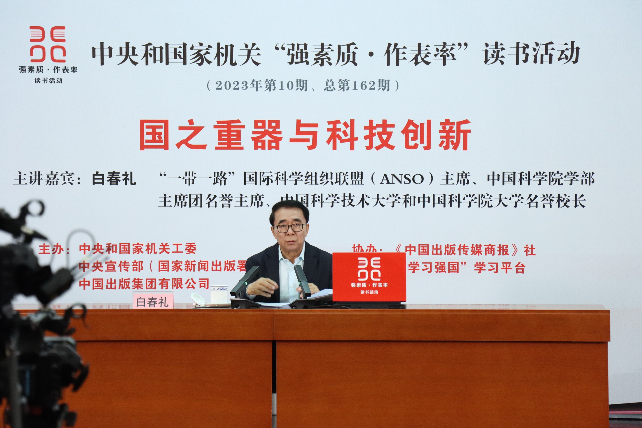 10月28日,中央和國家機關“強素質·作表率”讀書活動2023年第10期主題講座在京舉辦。“一帶一路”國際科學組織聯盟(ANSO)主席、中國科學院學部主席團名譽主席、中國科學技術大學和中國科學院大學名譽校長白春禮院士以“國之重器與科技創新”為題作講座。中央和國家機關各部門黨員干部近400人參加活動,現場氣氛熱烈,座無虛席。