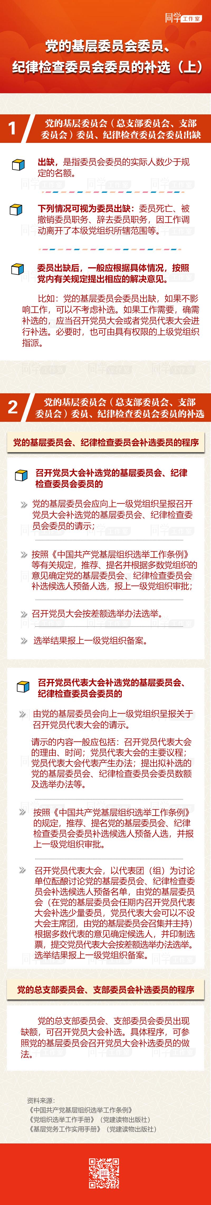 黨的基層委員會(總支部委員會、支部委員會)委員、紀律檢查委員會委員的補選,主要是指:黨的基層委員會補選委員、常務委員會委員和書記、副書記;黨的基層紀律檢查委員會補選委員、常務委員會委員和書記、副書記;黨的總支部委員會補選委員和書記、副書記;黨的支部委員會補選委員會委員和書記、副書記。