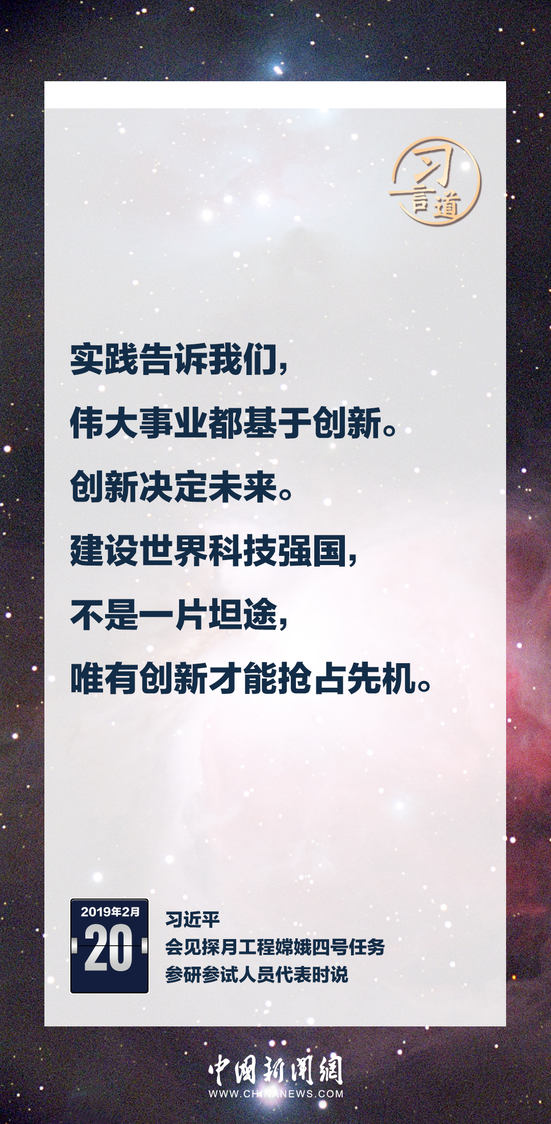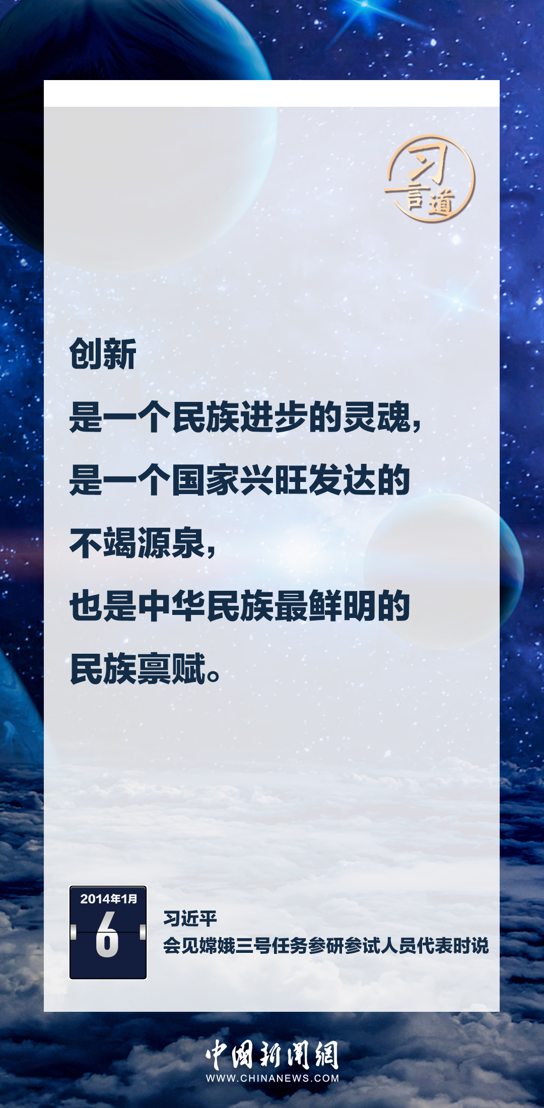 建設航天強國要靠一代代人接續奮斗。在不同場合,習近平總書記頻頻提及航天精神,激勵一代代中國人不斷奮進、筑夢太空。