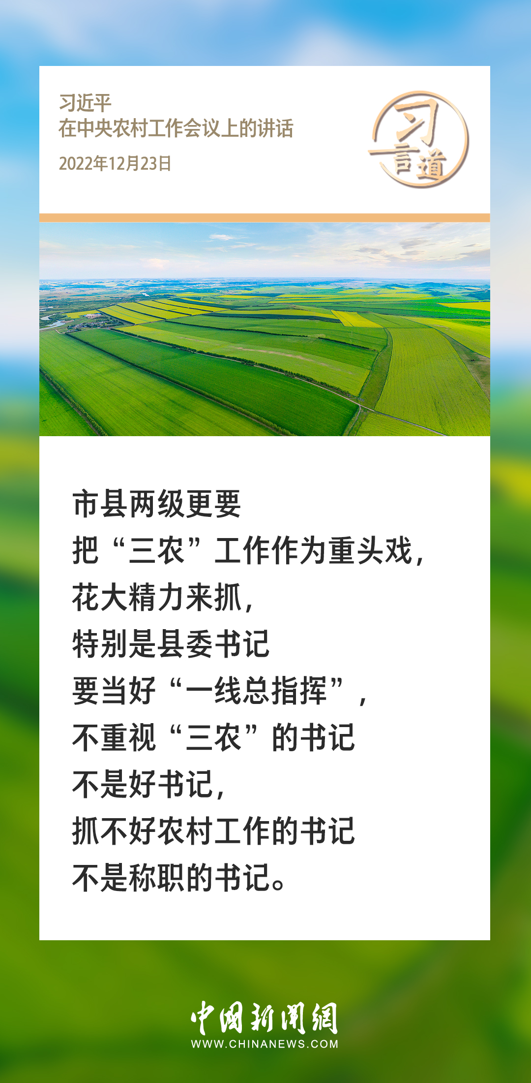 農為邦本,本固邦寧。習近平總書記多次在不同場合就“三農”工作發表重要講話、作出重要部署,始終堅持把解決好“三農”問題作為全黨工作的重中之重。