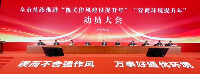 >> 2023年1月29日,南通市召開全市持續推進“機關作風建設提升年”“營商環境提升年”動員大會。