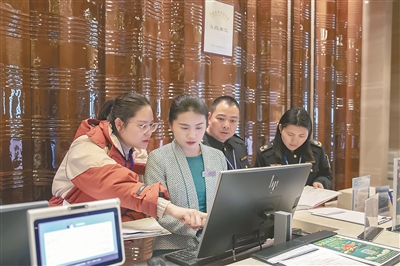 浙江省淳安縣紀委監委把糾治違規吃喝作為貫徹落實中央八項規定精神的重要抓手,深入轄區酒店、餐館等場所明察暗訪,通過查閱賬冊、調取明細等方式摸排問題線索,嚴查違規吃喝背后的請托辦事、利益輸送等問題,對頂風違紀行為發現一起、堅決查處一起。圖為近日,該縣紀檢監察干部和縣市場監管局工作人員在當地一酒店走訪了解相關情況。謝航凱 攝
