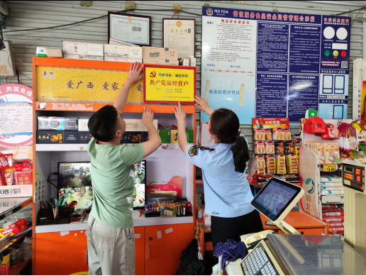 >> 廣西河池市南丹縣“小個專”黨總支為“共產黨員經營戶”掛牌,引導黨員商戶亮身份、亮職責、亮承諾。