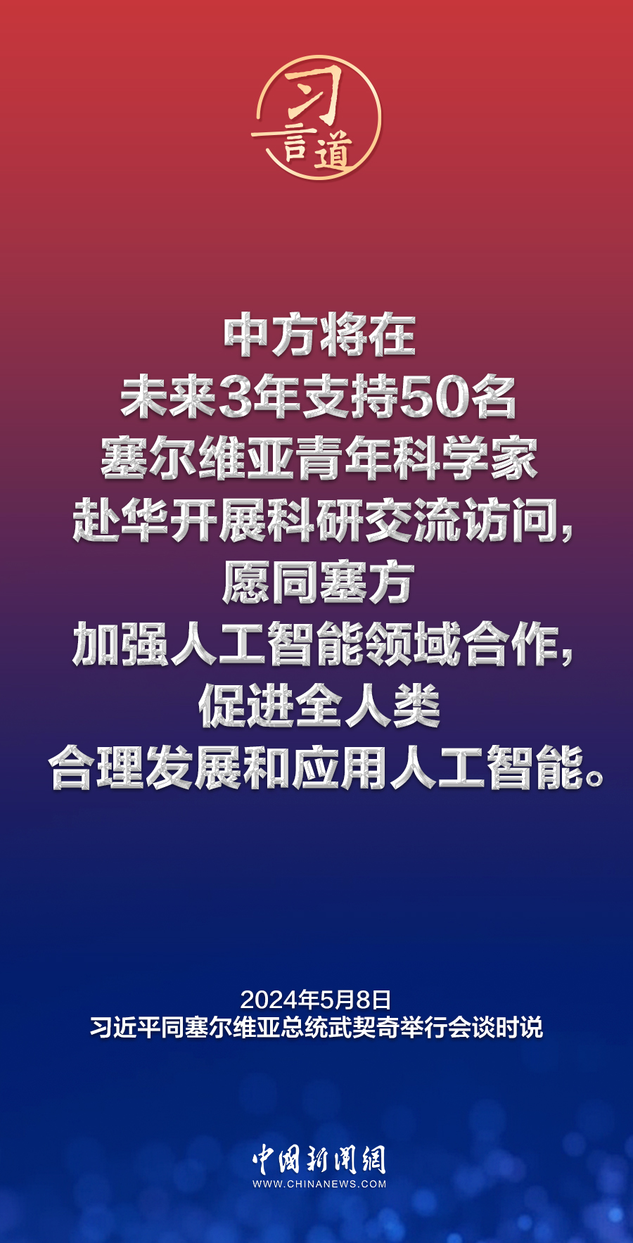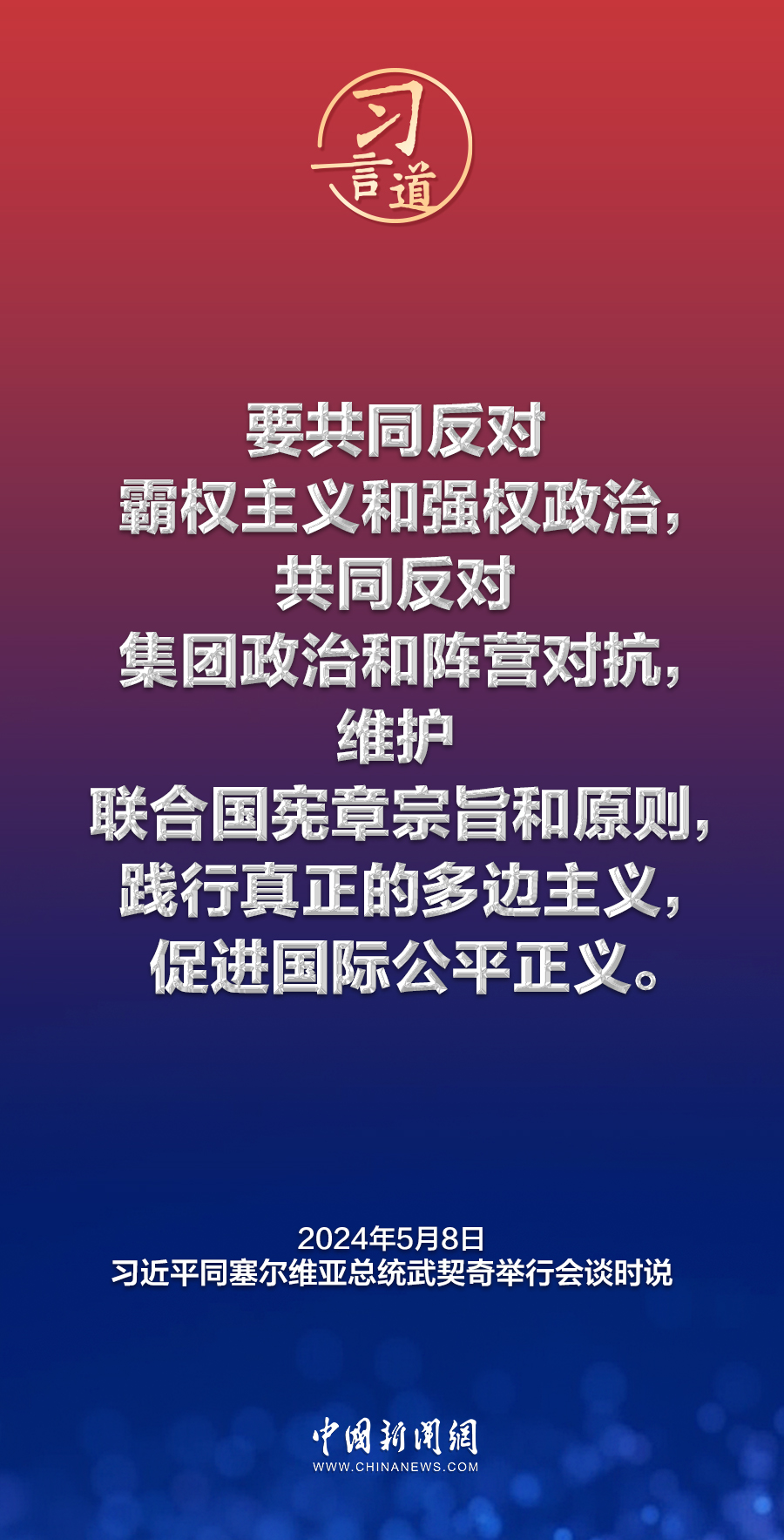 當?shù)貢r間5月8日上午,國家主席習近平在貝爾格萊德塞爾維亞大廈同塞爾維亞總統(tǒng)武契奇舉行會談。習近平指出——
