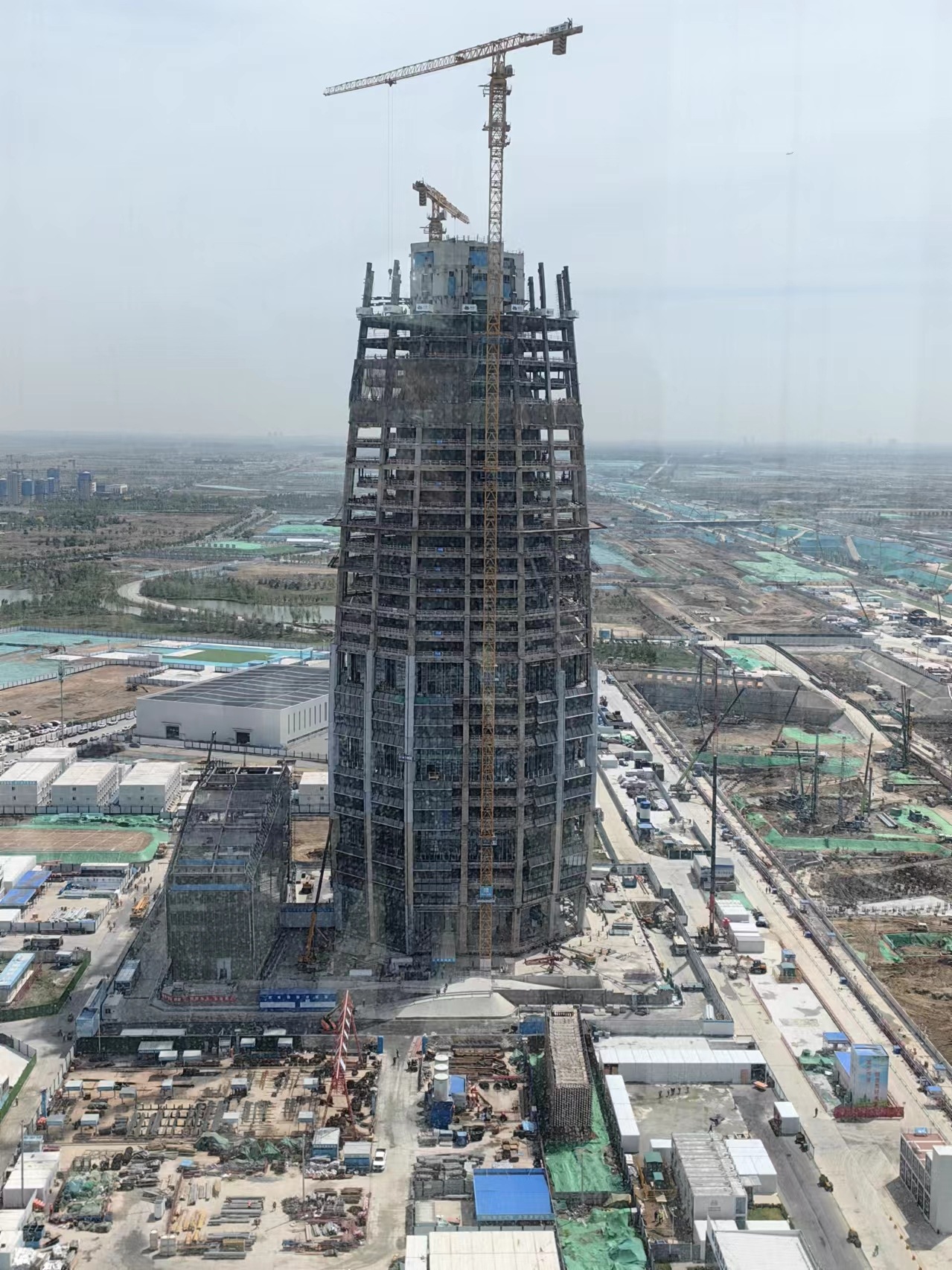 站在樓頂遠眺,四周塔吊林立,地上之城、地下之城、“云”上之城都是一派繁忙景象。