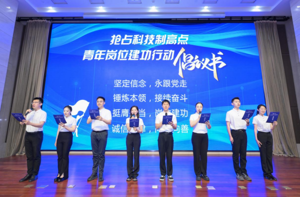 青年代表宣讀《搶占科技制高點 青春崗位建新功——致全院廣大青年的倡議書》。