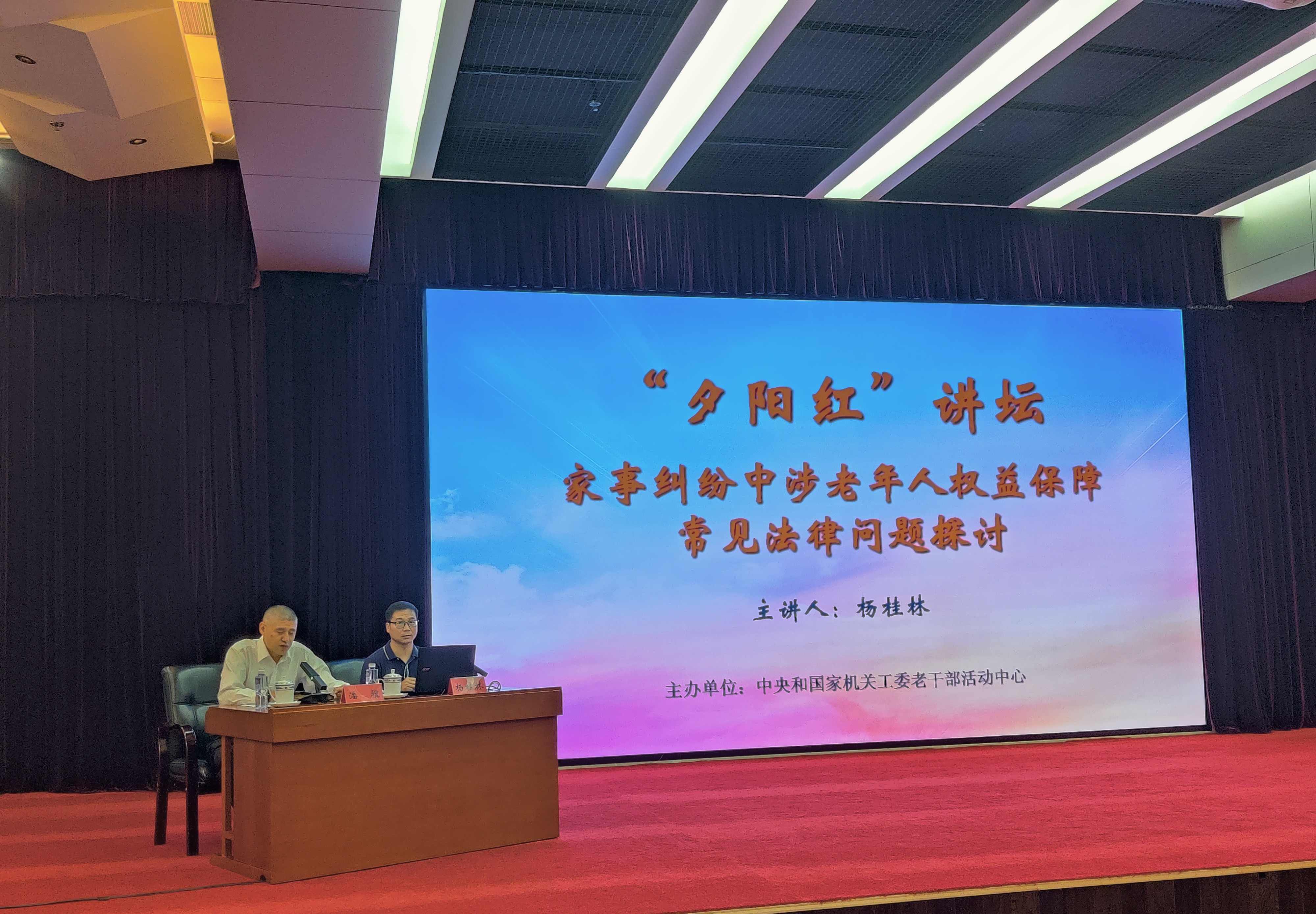 為進一步提高中央和國家機關老干部法律觀念和依法維權意識,6月14日,中央和國家機關工委老干部活動中心舉辦了“夕陽紅”講壇第一講,邀請北京市西城區人民法院民二庭副庭長楊桂林作“家事糾紛中涉老年人權益保障常見法律問題探討”主題講座。