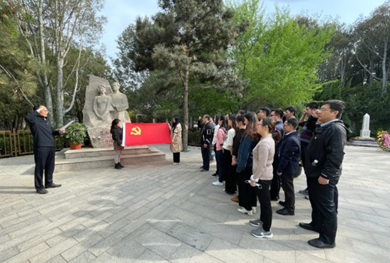 2021年4月19日,自然資源部自然資源確權登記局黨支部全體同志赴高君宇烈士墓開展“學黨史、祭英烈”主題黨日,集體重溫入黨誓詞。