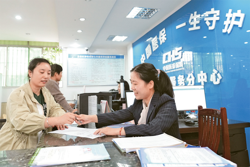 2023年10月初,重慶市北碚區醫療保障局聯合相關鎮街打造的5個醫保政務服務分中心正式啟用,主要經辦醫保關系轉移接續、個人賬戶一次性支取、醫保補繳等19項醫保業務,為周邊企業及群眾提供更加優質、高效、便捷的醫保公共服務。圖為10月9日,市民在北碚區靜觀鎮醫保政務服務分中心辦理醫保相關事宜。 人民圖片 秦廷富/攝