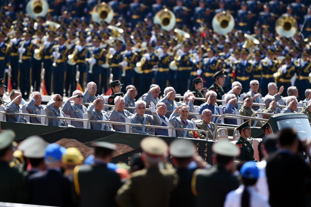 2015年9月3日,中國人民抗日戰(zhàn)爭(zhēng)暨世界反法西斯戰(zhàn)爭(zhēng)勝利70周年紀(jì)念大會(huì)在北京隆重舉行。這是抗戰(zhàn)老兵乘車方隊(duì)通過天安門廣場(chǎng)。新華社記者 王定昶 攝