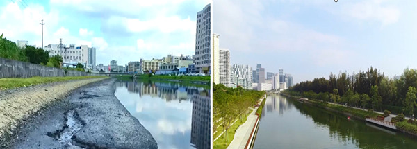 茅洲河治理前后對比圖。