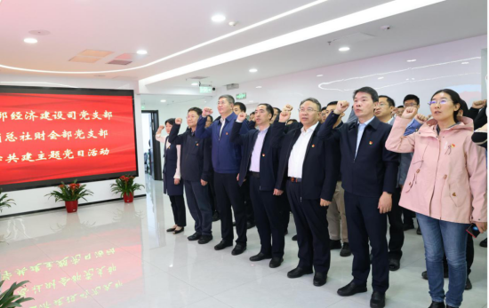 經濟建設司黨支部聯合有關部門基層黨組織開展主題黨日,組織全體黨員重溫入黨誓詞。