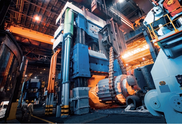 >> 中國一重1.5萬噸級自由鍛造水壓機和630噸·米鍛造操作機工作場景。