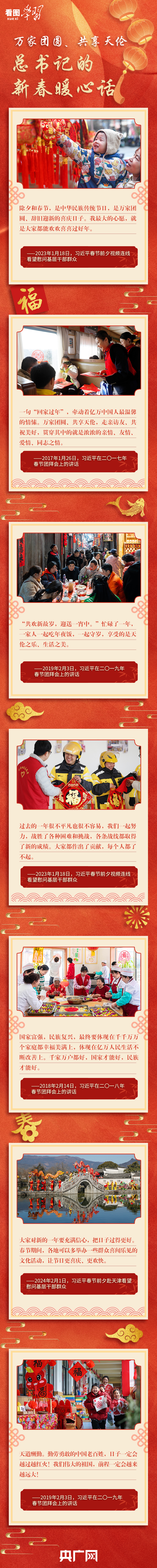 “共歡新故歲,迎送一宵中。”作為中華民族的傳統節日,除夕和春節是萬家團圓、辭舊迎新最重要的日子。每年春節前夕,習近平總書記都要看望慰問各地基層干部群眾,向全國各族人民送上新春祝福。