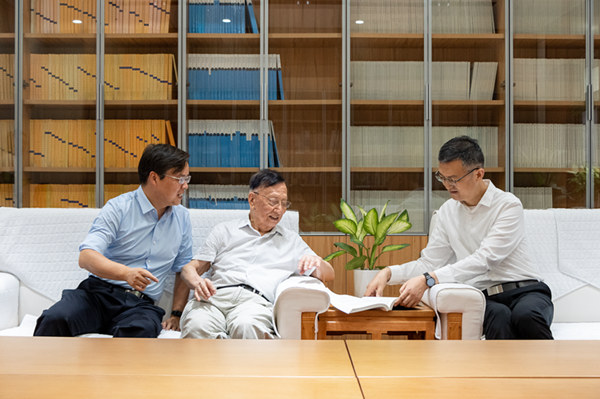 張仁和院士(中)與作者(右)、實驗室副主任汪俊(左)討論交流。